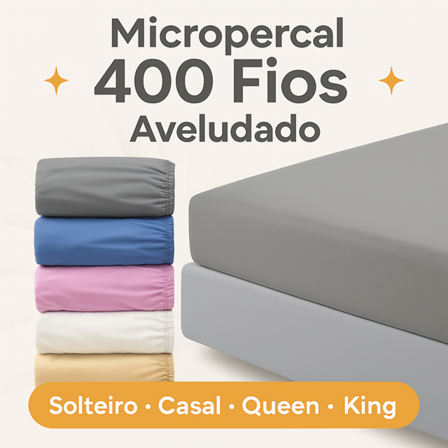 Lençol Avulso com Elástico Micropercal 400 Fios Solteiro Casal Queen King Toque Aveludado e Macio