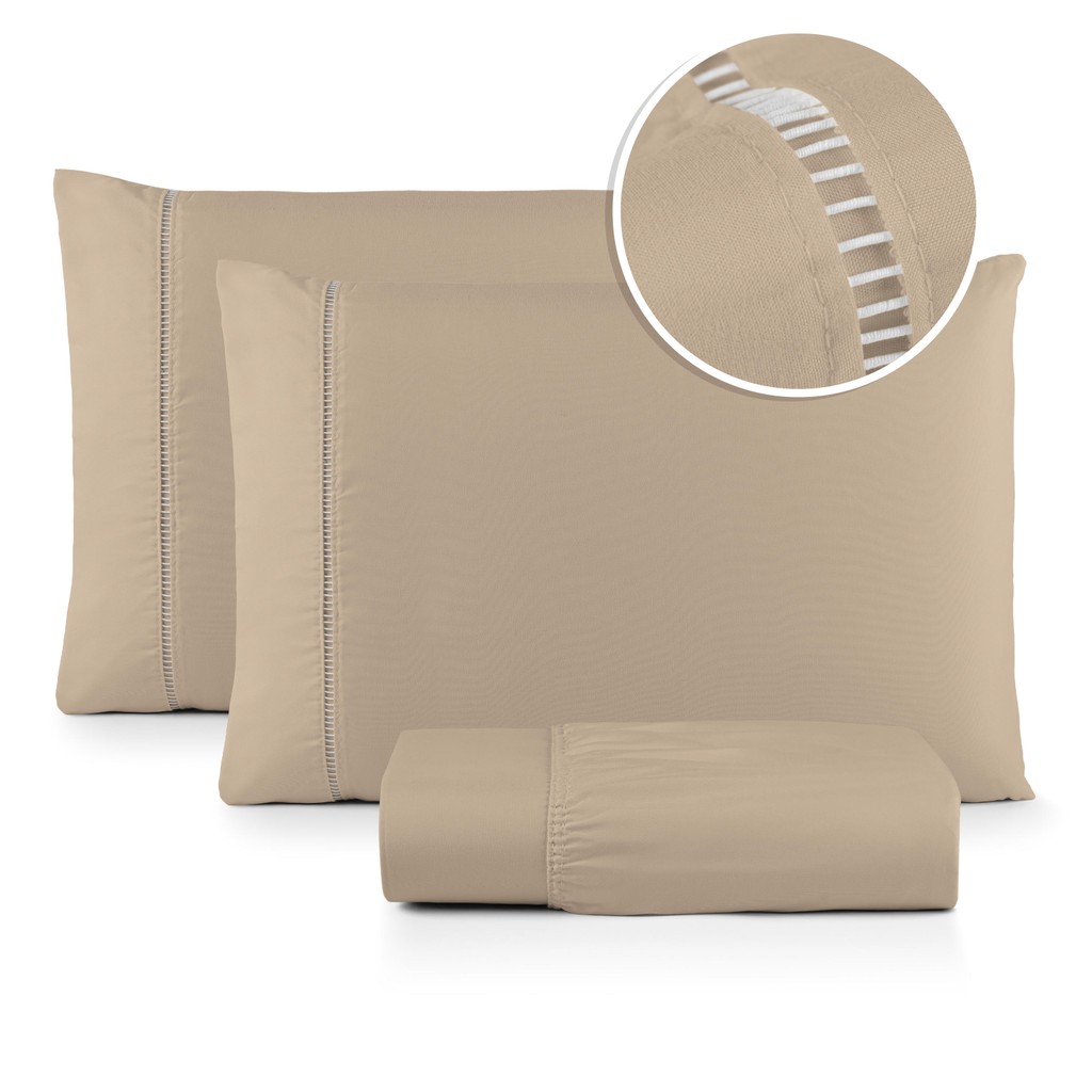 Lençol Casal Padrão MicroPercal 400 Fios 3 Peças com Fronha Ponto Palito