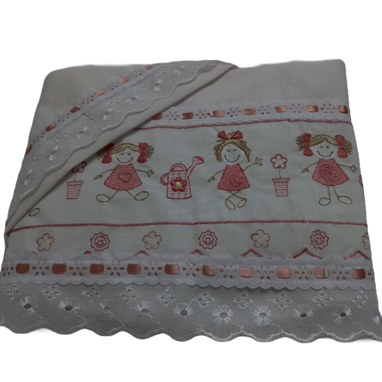 Lençol de Carrinho Bebe Bordado Com Detalhe Em Laise 3- Pçs