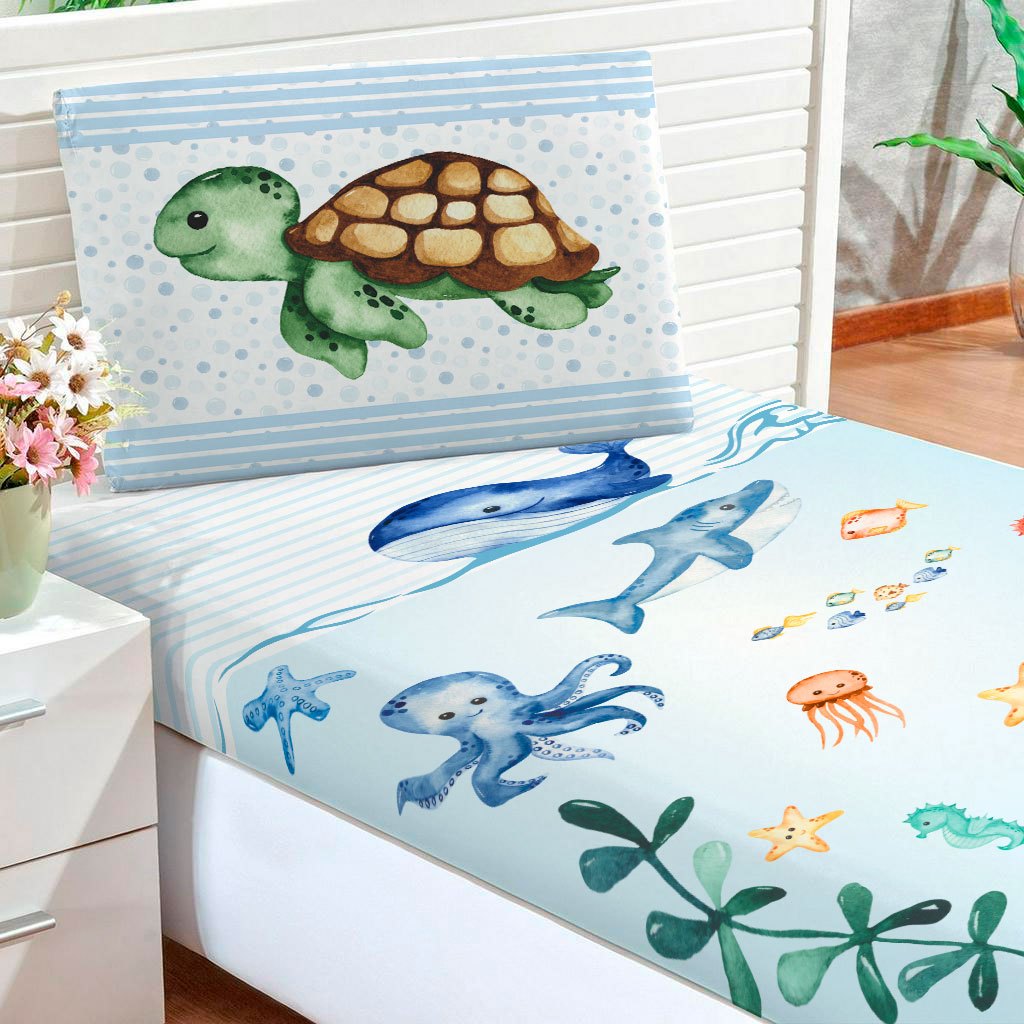 Lençol Infantil + Fronha oceano fundo do mar animais 100% Algodão - Lkt47