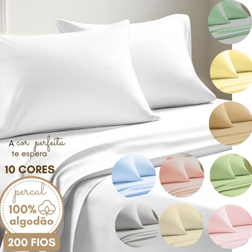 | Lençol Percal de Cima Kit com Fronha 200 Fios 100% Algodão Bainha C... este produto | R$ 104,99 | — | 4.8/5 | — |