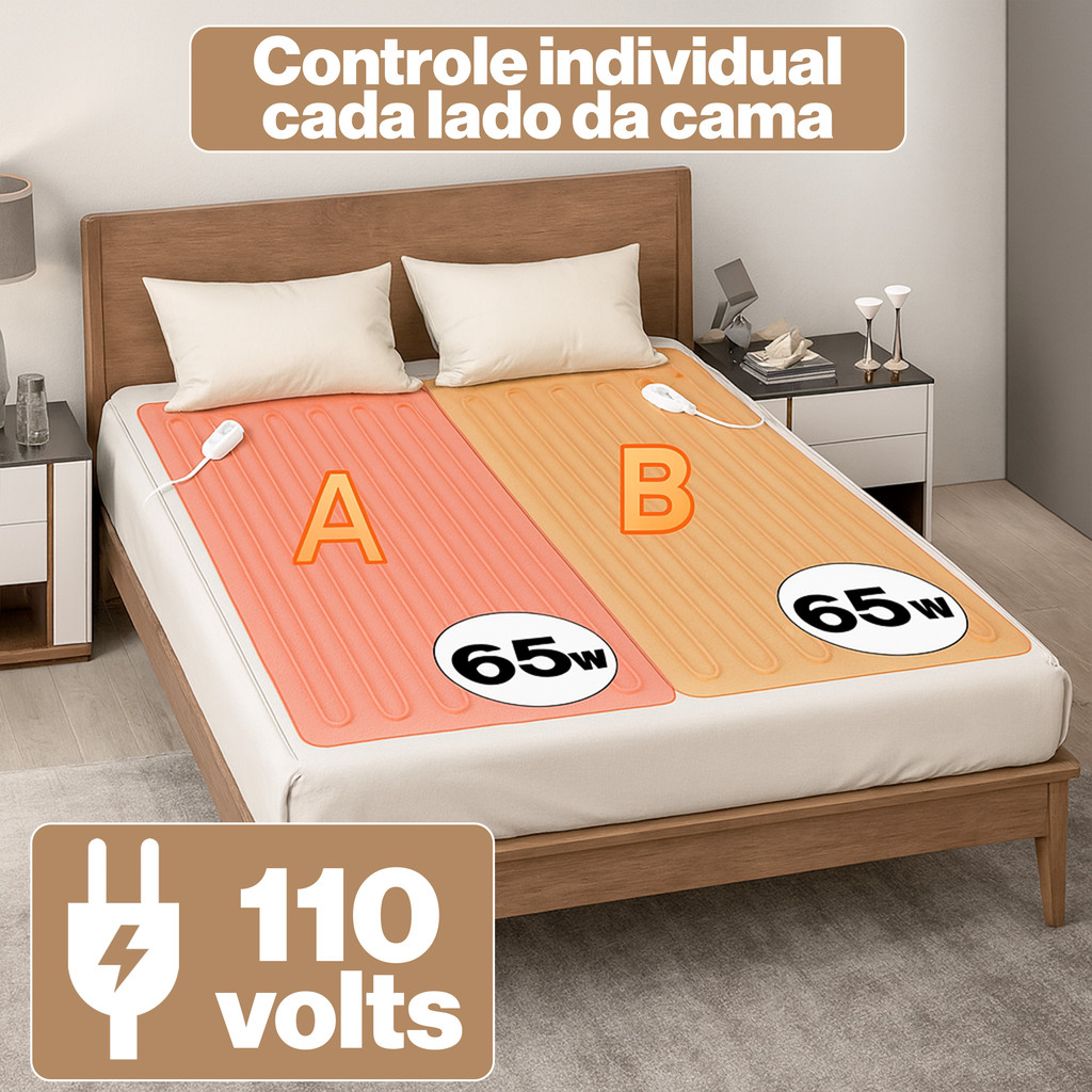 Lençol Termico Cama de Casal Queen Size 110v com Controle de Temperatura 203x152cm Inverno Poliester