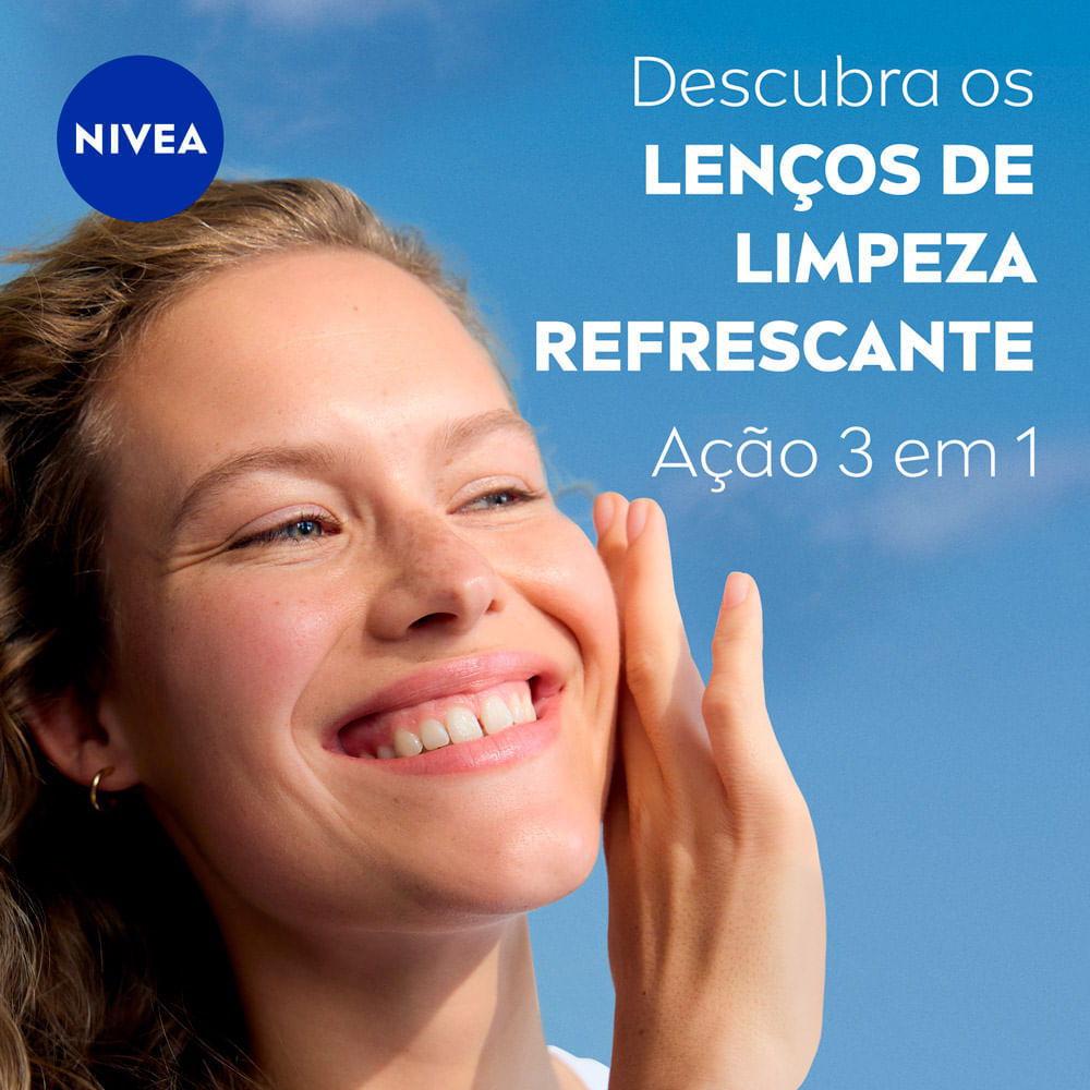 Lenço de Limpeza Nivea Demaquilante Ação Refrescante 3 em 1 O que é? NIVEA Lenços de Limpeza Ação Refrescante 3 em 1 são lenços de limpeza suaves e eficazes, ideais para remover maquiagem, inclusive