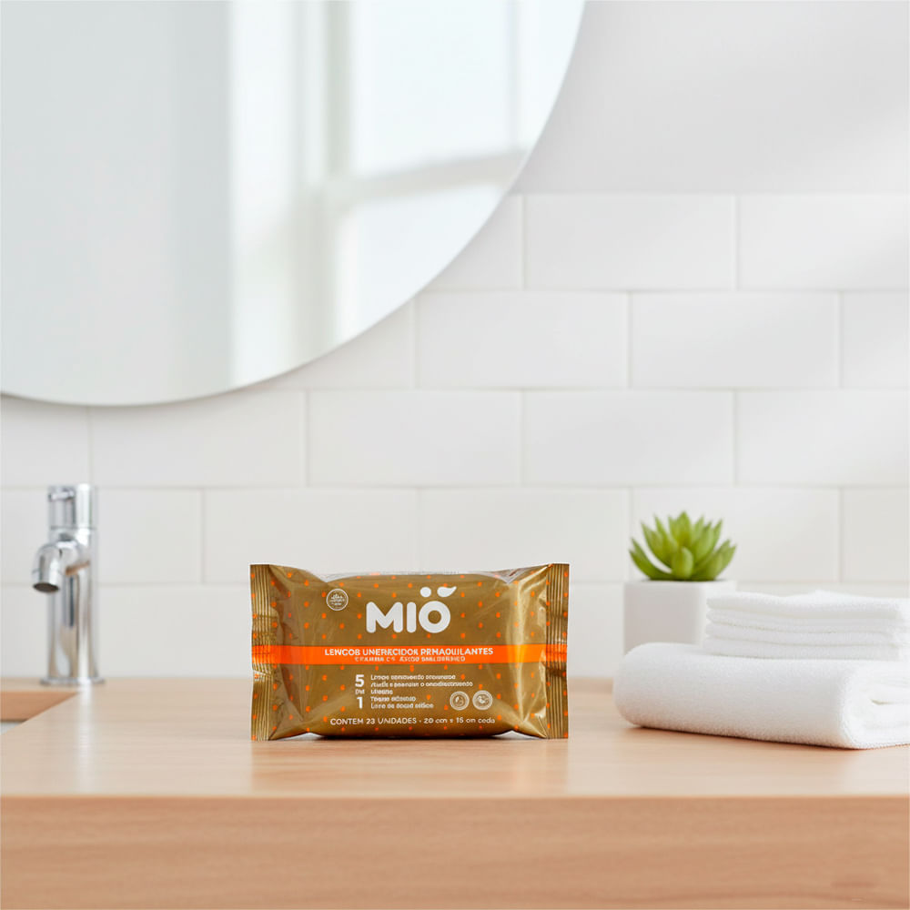 Lenços Umedecidos Demaquilantes Mió 5 em 1 com Vitamina C e Ácido Hialurônico 25 Unidades