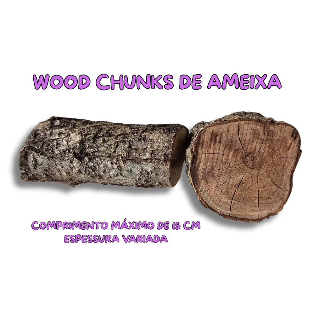ANUNCIO REFERENTE A 10 KG DE WOOD CHUNKS DE AMEIXA EVIAMOS APENAS 20KG DE LENHA POR COMPRA OS CHUNKS SÃO PEDAÇOS DE LENHA RELATIVAMENTE PEQUENOS, COM COMPRIMENTO MAXIMO DE 15 CM, PERFEITOS PARA DEFUMADORES DE PEQUENO E MEDIO PORTE E CHURRASQUEIRAS DE ALVENARIA 1 - Saco de ráfia com lenha de ameixa. 2 - Lenha seca, ensacamos nossas lenhas com nível máximo de umidade de 20%. 3 - Lenha cortada no comprimento máximo de 15 cm e espessura variada. 4 - Produto sujeito a alteração natural de peso Curiosidades: Ameixeira: árvore de porte modesto, que oscila entre seis e dez metros de altura. Sua madeira, dura e compacta, já foi comum em obras de marcenaria de luxo.