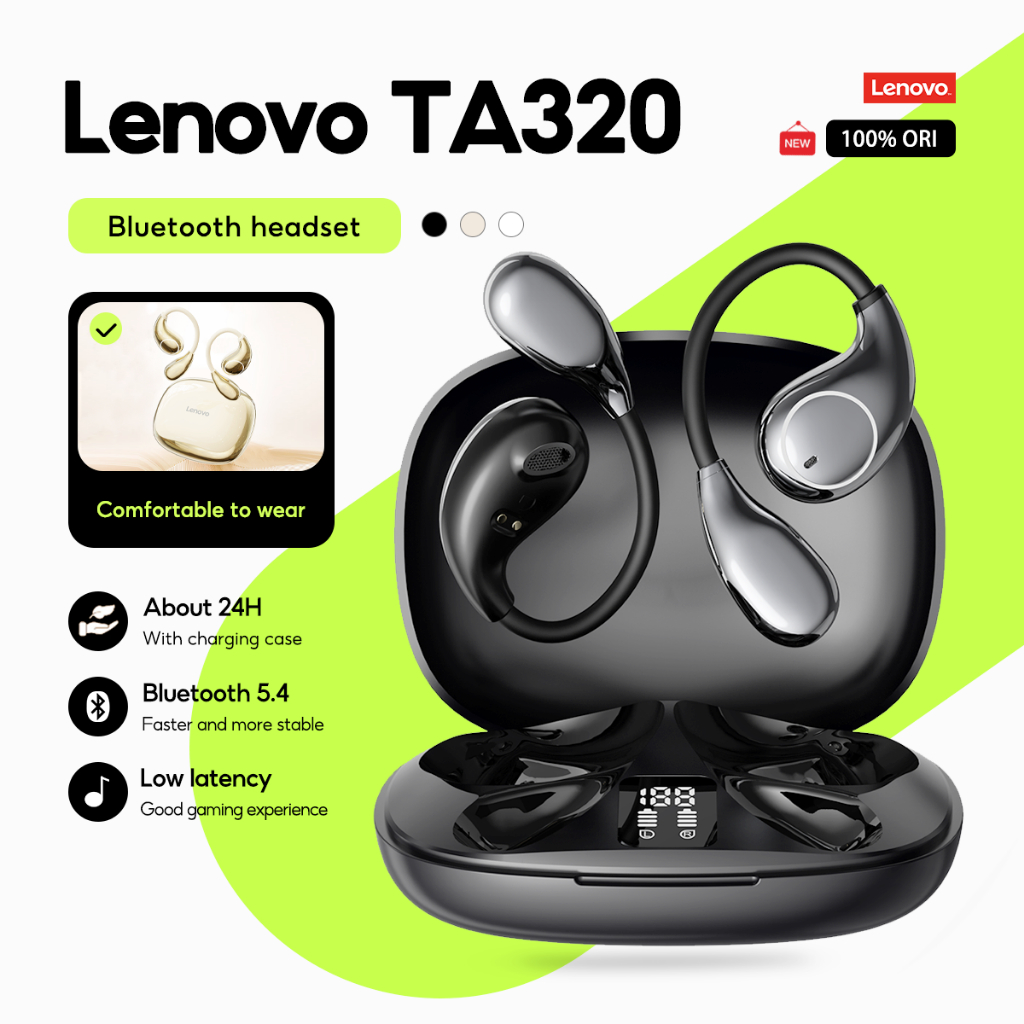 Lenovo Fones De Ouvido TA320 Bluetooth Sem Fio TWS Pendurado Estilo Orelha Fone 5.4 Controle Toque Longa Vida Útil Da Ba