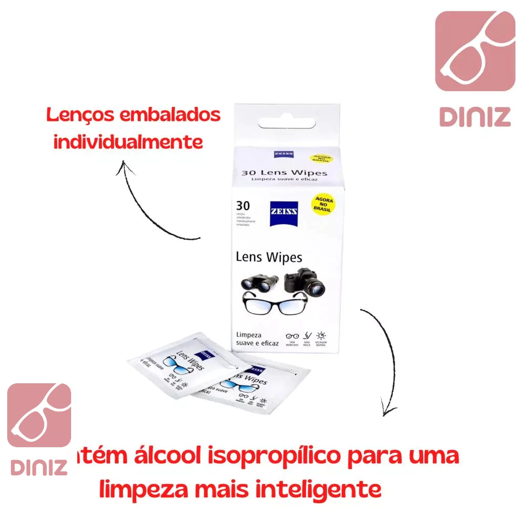 Lens Wipes Zeiss C/ 30 Lenços Umedecidos Limpa Lente