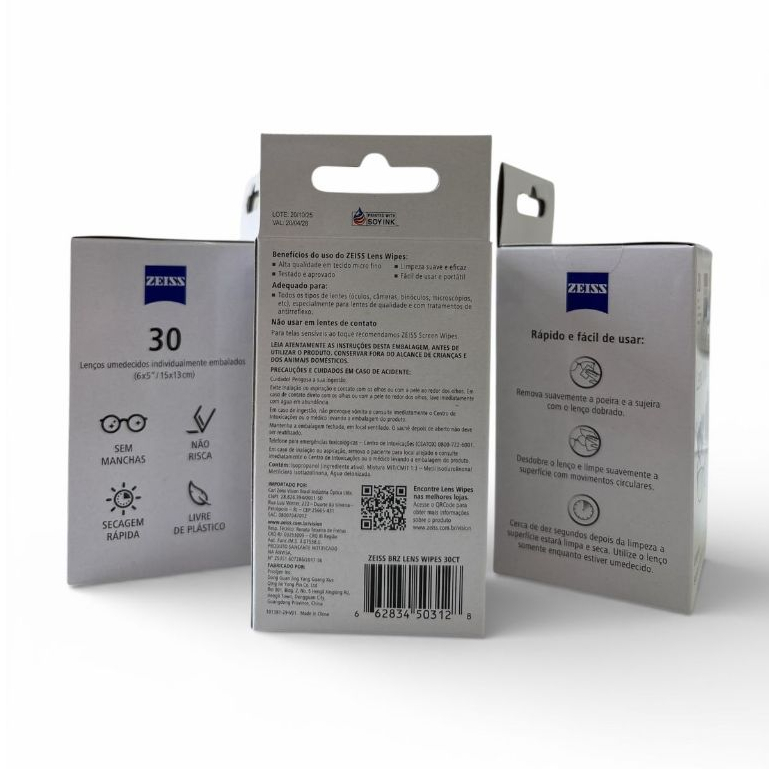 | Lens Wipes Zeiss C/ 30 Lenços Umedecidos Limpa Lente | R$ 29,90 | — | 5.0/5 | 8 |