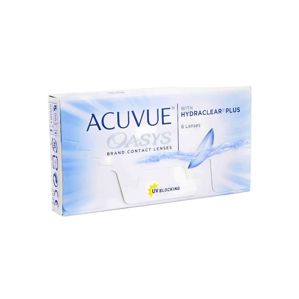 **MARINE SHOP | A maior ótica da Shopee** --- **ACUVUE OASYS® com HYDRACLEAR PLUS** As lentes de contato ACUVUE® OASYS® com HYDRACLEAR® PLUS foram desenvolvidas para proporcionar conforto excepcional, mesmo em ambientes que costumam ressecar os olhos, como locais com ar-condicionado ou exposição prolongada a telas. --- **Indicações de uso** Essas lentes podem ser ideais para você se: * Deseja uma sensação de uso natural, similar a estar sem lentes. * Passa muitas horas em frente ao computador. * Fica exposto a ambientes com ar seco, como locais climatizados. --- **Correções visuais** Corrige: * Miopia (dificuldade para enxergar de longe) * Hipermetropia (dificuldade para enxergar de perto) --- **Diferenciais** * Sensação natural, como se não estivesse usando lentes (relatada por 8 em cada 10 usuários) * Conforto prolongado durante o uso de dispositivos eletrônicos * Redução da sensação de olhos secos e cansados * Excelente fornecimento de oxigênio para a córnea * Alta proteção contra raios UV (96% UVA e 100% UVB) --- **Tecnologia e material** * A tecnologia HYDRACLEAR® PLUS mantém a lente suave e hidratada ao longo do dia * Material: Senofilcon A (silicone hidrogel), que permite maior oxigenação comparado a lentes de hidrogel convencionais --- **Modo de uso** * Uso diário com descarte quinzenal * Alternativamente, uso contínuo por até sete dias e seis noites, conforme orientação médica --- **Especificações técnicas** * Desenho: Esférico * Indicações: Correção de miopia e hipermetropia * Programa de uso: Descarte quinzenal (uso diário ou prolongado sob recomendação) * Material: Senofilcon A (Silicone Hidrogel) * Hidratação: 38% * Cor de visibilidade: Aqua (não altera a cor dos olhos, facilita o manuseio) * Dk/t (transmissão de oxigênio): 147 * Diâmetro: 14,0 mm * Curva base: 8.4 mm * Espessura central: 0,07 mm **Parâmetros atendidos** * Esférico: -0,50 a -12,00 e +0,00 a +8,00 * Até -6,00: intervalos de 0,25 | Acima: intervalos de 0,50 **Conteúdo da embalagem** * 1 Caixa com 6 lentes (3 pares) do mesmo grau * 1 Frasco de Solução Renu (60 ML) * 1 Estojo para lentes de contato --- **Registro ANVISA**: 80148620058 **Observação legal**: Produto não requer receita médica ou controle de temperatura. A venda no varejo é permitida apenas para empresas com CNPJ ativo e registro no CNAE 47.74-1-00, conforme regulamentação da Anvisa. --- **MARINE SHOP | Atendimento de Excelência** MARINE SHOP O melhor atendimento para você 100% de qualificações positivas!!! Nosso horário de atendimento: De segunda a sexta, das 08:00h às 19:30h Sábado, das 08:00h às 14:00h