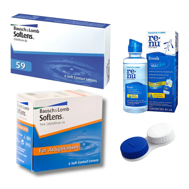 Lente de Contato Soflens Tórica 66 e Lente de Contato Soflens 59 + Estojo + Renu60ML