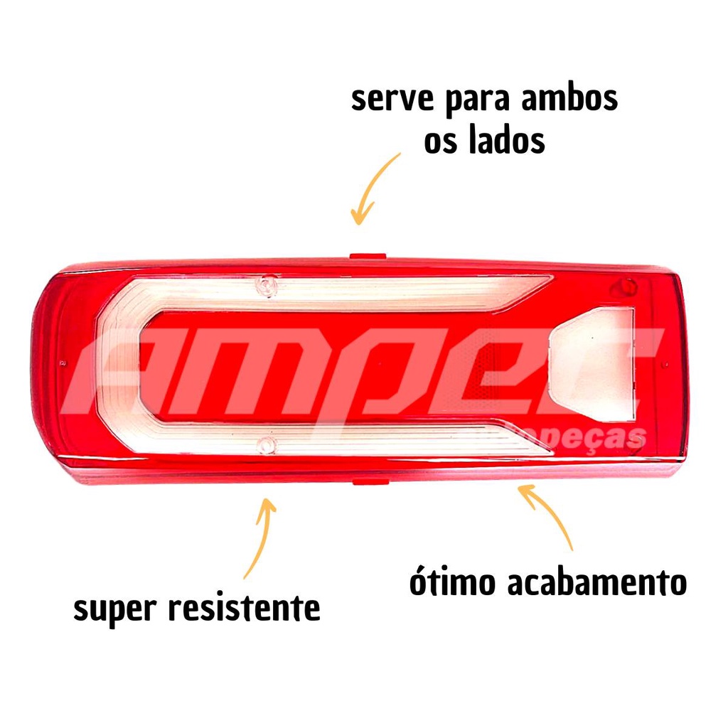 LENTE da Lanterna Traseira Para Caminhões Mercedes Benz Actros, Accelo, Atego e Axor após 2019 Cores da lente: Branco e Vermelho Lente em acrílico SERVE PARA AMBOS OS LADOS Medidas da lente: Comprimento: 37 cm Largura: 13 cm Altura: 4 cm Aplicável em TODOS os modelos Caminhões Mercedes Benz: Actros 2020, 2021, 2022, 2023 Accelo 2020, 2021, 2022, 2023 Atego 2020, 2021, 2022, 2023 Axor 2020, 2021, 2022, 2023 Alta qualidade, durabilidade, segurança e resistência -------------------------------------------------- - A AMPEC AUTOPEÇAS não se responsabiliza pelo mau uso ou instalação indevida do produto, sempre recomendamos que a instalação seja feita por um profissional especializado. - O produto é novo ? Sim -Tem disponibilidade do produto ? Temos disponibilidade de todos nossos produtos enquanto durarem os estoques, favor nos consultar antes da compra. -O produto vem com nota fiscal ? Sim, todos nossos produtos acompanham nota fiscal. - Imagem ilustrativa utilizada para identificação e demonstração de produto. - As Marcas e Modelos citadas no anúncio, pertencem aos seus respectivos fabricantes, somente mencionadas como referências para o uso correto do produto, conforme artigo 31 da Lei: 8078 de 11.09.1990 * Não temos qualquer vínculo com estas empresas. Infelizmente não emitimos NF para revenda fora do estado do Paraná. Desculpe. Fora do estado atendemos apenas destinado a consumidor final.