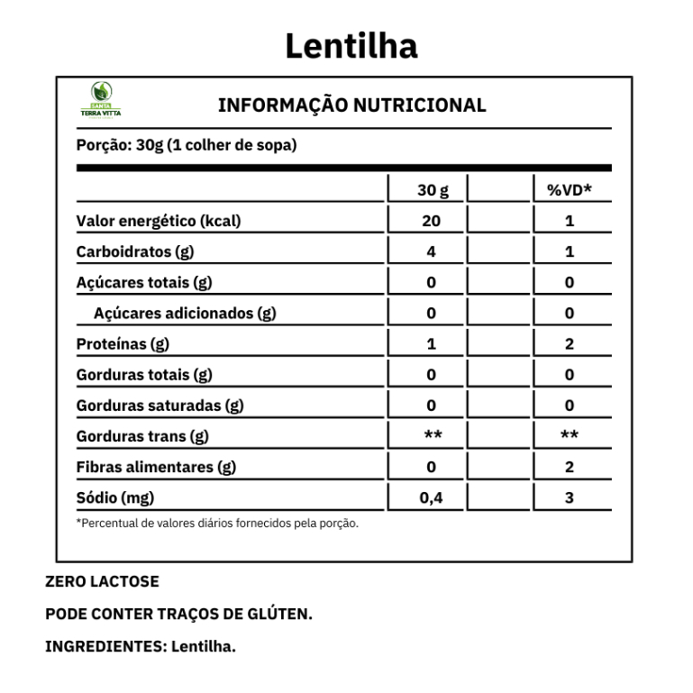 A lentilha canadense é conhecida por seus grãos uniformes, menores e de cor esverdeada ou bege. Tem sabor suave e textura macia após o cozimento, sendo ideal para sopas, saladas, ensopados e acompanhamentos variados. Cozinha rapidamente sem necessidade de deixar de molho. Ingredientes: Lentilha. ALÉRGICOS: PODE CONTER TRAÇOS DE GLÚTEN, LEITE, SOJA, AMENDOIM E CACAU POR CONTAMINAÇÃO CRUZADA. INFORMAÇÕES ADICIONAIS - PODE HAVER VARIAÇÃO DE COR DEPENDENDO DO LOTE. - EMBALAGEM MERAMENTE ILUSTRATIVA.
