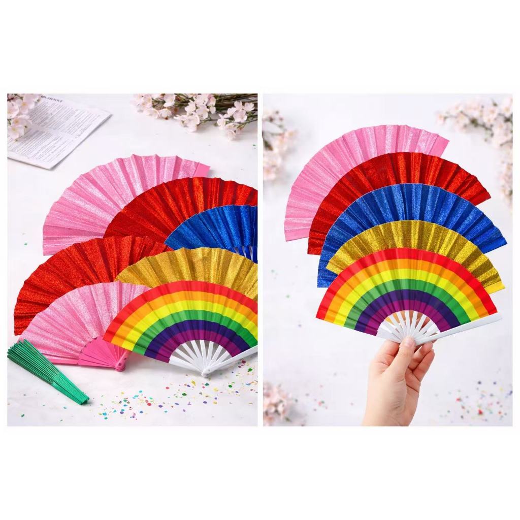 Leque Colorido(P) Modelos com Glitter, Liso e Arco-Íris PEQUENO Carnaval bloco Festa e Decoração