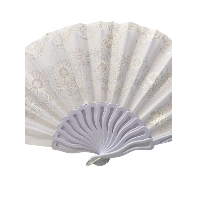 Leque Branco Tecido branco Leque de mão é um acessório que para nos irmãs combina funcionalidade e estilo. Com um comprimento de haste de 23 cm e uma largura máxima de abertura de 41 cm, este leque é leve e fácil de manusear, perfeito para qualquer ocasião. Em dias quentes é uma combinação perfeita. LOUVEMOS A DEUS COM ALEGRIA! ------------------------------------