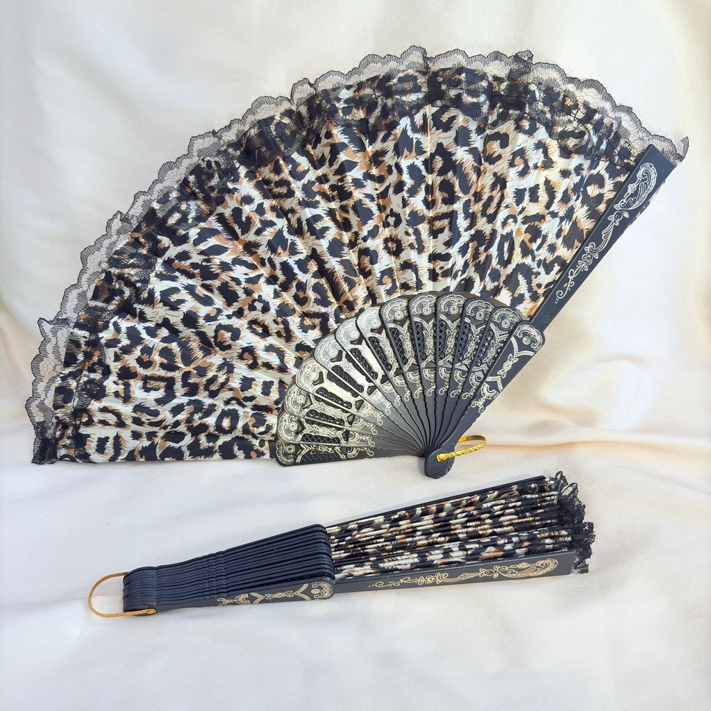 Leque de Mão Estampado de Animal Print de Onça