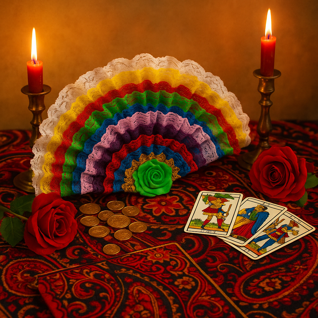 Leque Pomba Gira, Cigana, Maria Mulambo, Sete Saias e Esmeralda