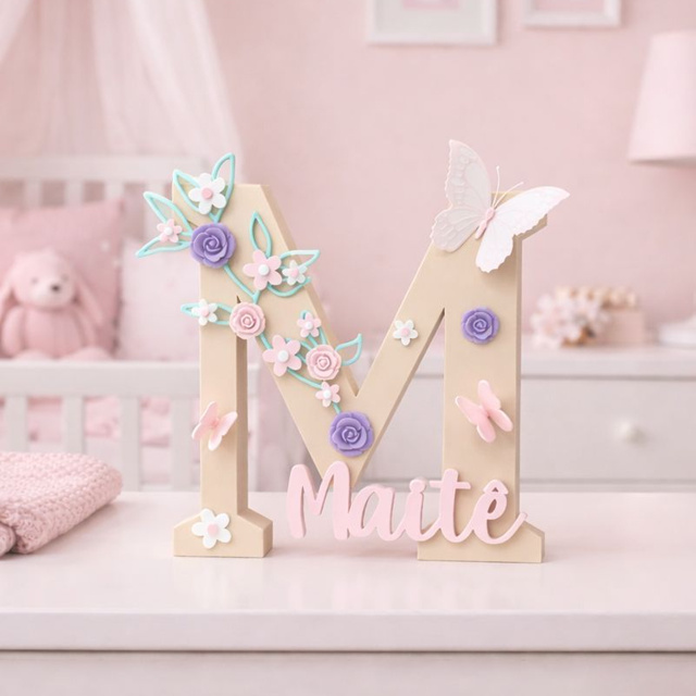 Letra e Nome Decorativo Personalizado em Relevo Jardim Floral Decoração Maternidade Quartinho de Bebê Menina