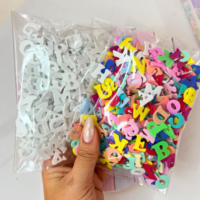 kit com 400 letras de Eva tam 1,5cm. Os kits são alfabetos completos. Escolha entre branco ou colorido. Caso queira alguma cor específica entre em contato no campo de msg