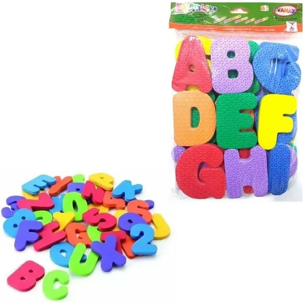 Letras E Números Alfanumérico em Eva Colorido 36 Peças 8CM
