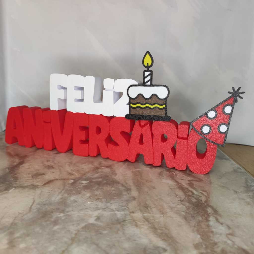 š Letreiro Feliz AniversĆ”rio 3D com Bolo e ChapĆ©u ā 25x9cm ā Decoração Festa