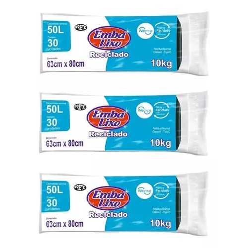 Conte com nosso envio Ultra Rápido!! Kit com 5 pacotes de saco p lixo ! Cada Pacote de saco para lixo contem 50 unidades de 50 Litros/10kg Super Econômico, Embalixo é sinônimo de qualidade e bom preço!! Resíduo Normal Classe 1- Tipo C Dimensão 63cm x 80cm
