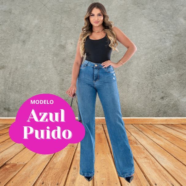 LEVE DEFEITO Calça Jeans WIDE LEG Elastano Cintura Alta Efeito 100% Algodão