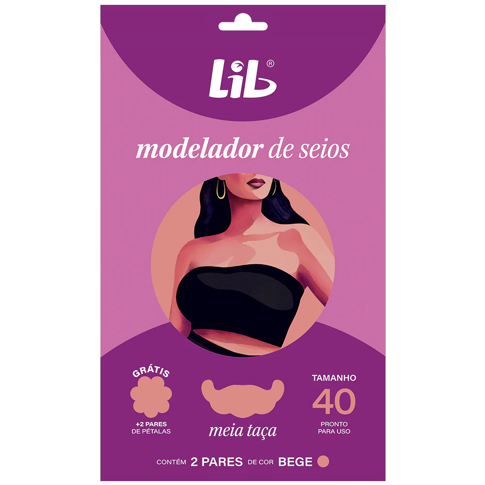 EM CADA EMBALAGEM CONTÉM DOIS PARES NA COR BEGE Seja qual for a ocasião, o sutiã adesivo Lib Meia Taça tem função de modelador de seios proporcionando a liberdade de movimento que toda mulher procura e necessita, tornando-a mais elegante e sensual. Porque comprar Lib: • Fábrica nacional há 45 anos no mercado brasileiro • Primeira e única marca aprovada pela ANVISA • Mais de 30.000 pontos de venda • Exportada para Estados Unidos, França, Portugal... • Produtos testados dermatologicamente no Brasil • Melhor avaliação no Reclame Aqui Porque comprar Lib: • Fábrica nacional há 45 anos no mercado brasileiro • Primeira e única marca no seguimento aprovada pela ANVISA • Mais de 30.000 pontos de venda • Esportada para Estados Unidos, França, Portugal... • Produtos testados dermatologicamente no Brasil • Melhor avaliação no Reclame Aqui Benefícios: • Formato meia taça é perfeito para todos os modelos de roupa. • Dermatologicamente testado – Hipoalergênico • Clinicamente comprovado: 84% mais hidratação para os seios durante o uso. • Pode ser molhado e continuar usando (chuveiro, praia, piscina) Sobre o Produto: • Tamanhos: 40,42,44 e 46 • Conteúdo: Cada embalagem contem 2 pares na cor bege • Uso: único por até 12 horas • Composição: Adesivo Hipoalergênico e Não-Tecido Dúvidas Comuns: 1) Como deve estar a pele para usar os adesivos para seios da Lib? Deve estar completamente limpa e seca, sem creme, óleo, talco, suor. Não use sobre a pele irritada, machucada ou queimada de sol. Dica de amiga: Não coloque Lib logo após o banho pois sua pele ainda está úmida. 2) Como retirar o papel protetor dos adesivos descartáveis? Esfregue suavemente com aponta dos dedos uma das extremidades do adesivo Lib e retire completamente o papel protetor branco. 3) Como devo colocar o Lib Meia Taça? Comece aplicando o adesivo Lib na altura do mamilo em direção à parte inferior. O mamilo pode ou não ser coberto. Suspenda o seio levemente, evitando o excesso de alavancagem. Fixe o adesivo modelador na pele. 4) O que quer dizer produto hipoalergênico? O termo hipoalergênico, determina um produto de baixa alergenicidade, mas eventualmente algumas peles podem reagir de forma adversa. Em qualquer desconforto descontinue o uso. 5) Quais as diferenças entre os produtos da Lib descartáveis e os reutilizáveis? Em ambos usamos materiais hipoalergênicos, os descartáveis são de material microporoso e os reutilizáveis são de silicone com grau médico. Seguindo as instruções que estão nas embalagens você tem tudo para ter a melhor experiência com Lib. 6) Posso usar os adesivos de seios da Lib na praia, piscina e banho? Sim, toda nossa linha de adesivos Lib não se desprendem com a água. Após o contato com água, enxugue os adesivos Lib com a toalha, sem esfregar e continue o uso. 7) Como retirar os adesivos de seios da Lib após uso na praia, piscina e banho? Adesivos Descartáveis: Na hora de retirar, tenha certeza que a sua pele e os adesivos Lib estão secos, se sua pele for sensível, sugerimos que aplique um óleo corporal para facilitar a retirada. Adesivos reutilizáveis: aqui não tem segredo, você pode retirar mesmo com a pele molhada. Pode secar a pele e o adesivo e voltar a usar. 8) Quanto tempo posso usar os adesivos da Lib? Até 8 horas Lib Silicone, Lib Ultrafino e Mini Sutiã e Lib Heart. Por 12 horas: Lib Meia Taça, Lib Gota, Lib Pétalas e Pétalas X. 9) Por que gestantes não devem usar adesivos nos seios? Não há um componente específico o qual determine a contraindicação do produto, ele não permeia à pele. Não indicamos o uso em gestantes pois as reações metabólicas e os hormônios na gestação estão alterados. O volume dos seios é maior. Pode vir a ocorrer uma reação de sensibilização (formação de bolhas, ardência) na pele exposta ao produto em função de todas as alterações relatadas. 10) Por que lactantes não podem usar? Não recomendamos o uso pois caso ocorra uma sensibilização em sua pele, o tratamento com medicamentos ficam reduzidos aos que podem ser utilizados durante a lactação. Pode ainda, ficar resíduo de adesivo na pele, interferindo na amamentação. Sabemos que toda mulher ama usar Lib, porém não custa nada esperar um pouquinho!