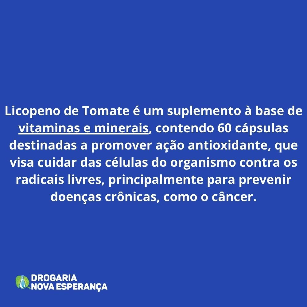 Licopeno de Tomate é um suplemento à base de vitaminas e minerais, contendo 60 cápsulas