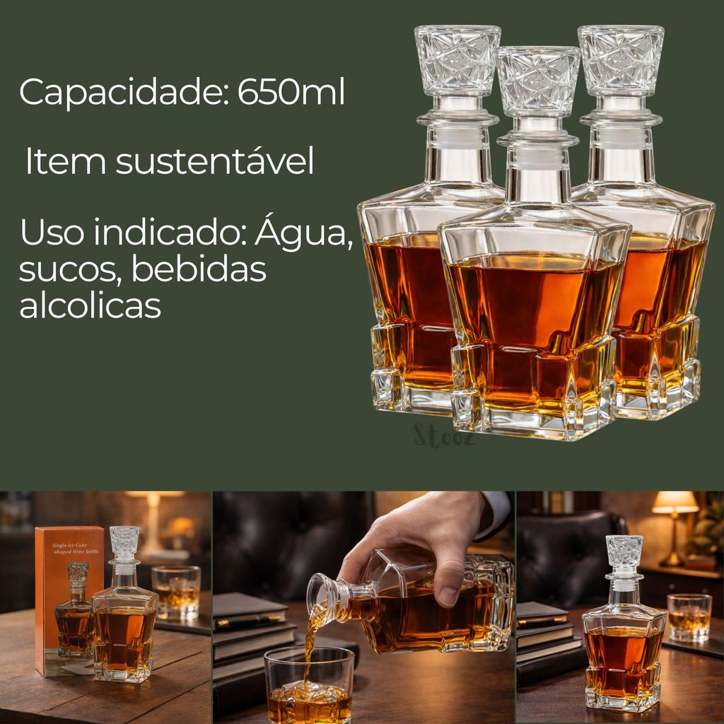Licoreira Garrafa Vidro 650ml Whisky Licor Tampa Retro Vidro