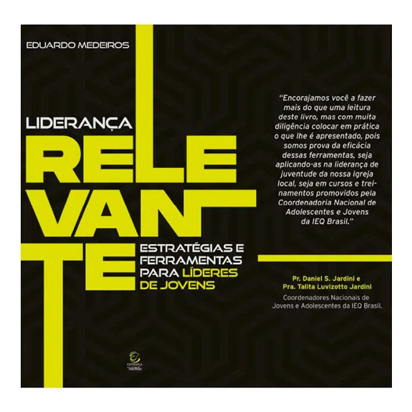 Livro Liderança Relevante Estratégias e Ferramentas para Líderes de Jovens PERDIDO NO TRABALHO COM JOVENS? Já tentou inúmeras estratégias, mas sente que nada pareceu ter o efeito esperado? Você não está sozinho. Diversos líderes, assim como você, enfrentam desafios semelhantes. O segredo está em reconhecer humildemente que cada igreja e cada grupo de jovens têm suas características e contextos únicos. Neste livro ajudarei você oferecendo insights práticos, moldados e comprovados por experiências REAIS, que serão adaptáveis à sua realidade única. Nestas páginas, ministrarei sobre: Maximizar o potencial de uso positivo das Mídias Sociais; Cultivar lideranças confiáveis e carismáticas; Integrar Eventos, Pequenos Grupos e Discipulado com eficácia; Treinar líderes para impactar vidas e promover mudanças; Motivar jovens a fazerem a diferença em sua comunidade. Se você deseja ser um Líder Relevante e marcar duradouramente a vida dos jovens, este livro é para você! Especificações do livro Liderença Relevante Título: Liderança Relevante Subtítulo: Estratégias e Ferramentas para Líderes de Jovens Autor(es): Eduardo Medeiros Ano de Edição: 2023 Capa: Brochura Acabamento: Laminação Fosca = Miolo: Papel Pólen Natural 80 g/m² Páginas: 208 Dimensões: Altura: 22,5 cm Largura: 15,5 cm Profundidade: 1,0 cm Peso: 0,220 kg ISBN: 9788578393519 Editora: Esperança