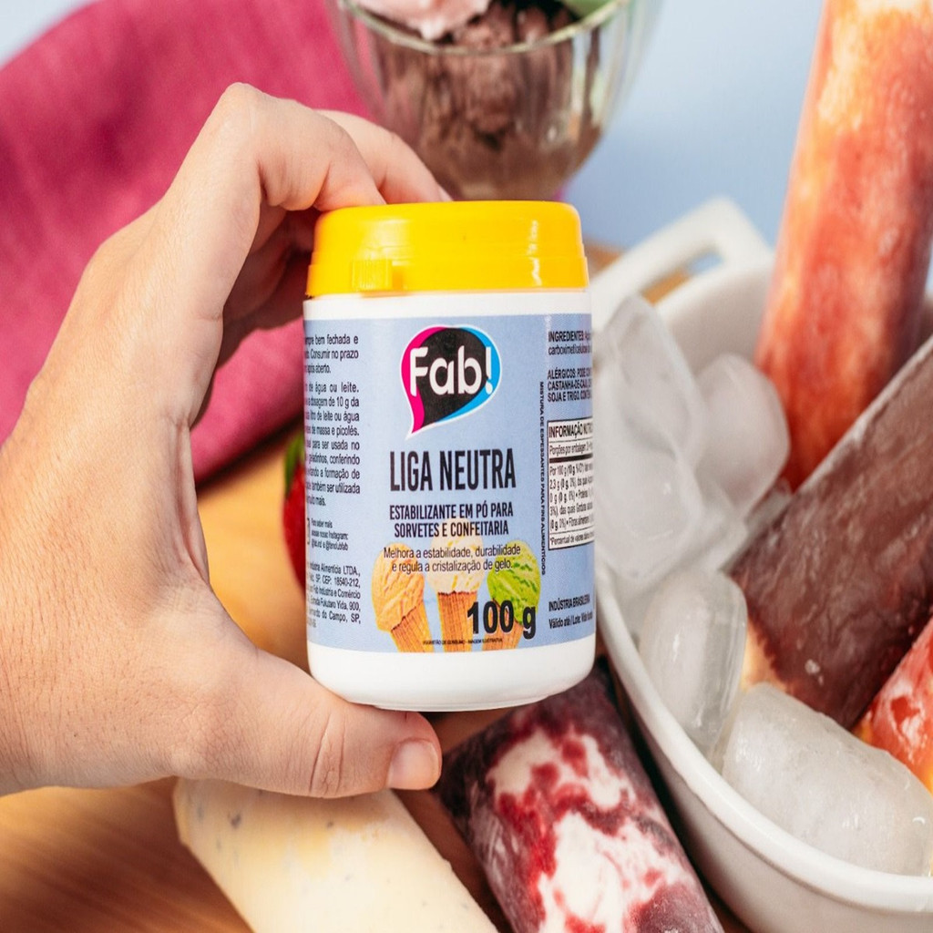 A Liga Neutra da Fab! dá um resultado diferenciado a outras ligas neutras do mercado! Você terá todos esses benefícios mais de forma potencializada! Com menos você terá mais!! Foi aprovada e testada por grandes profissionais de confeitaria e sorveteri A Liga Neutra é MUITO VENDIDA PARA FAZER GELADINHOS! (sacolé, Din Din, gelinho, marujinho..cada região chama de uma forma).. ESSE É O GRANDE MERCADO! PARA QUE SERVE? A liga neutra, gera uma LIGA na mistura, dando boa estrutura, cremosidade, estabilizando os peparos e evitando a formação de cristais de gelo. ONDE A LIGA É MAIS UTILIZADA? Na produção de Geladinhos Gourmet (sacolés, dindin, marujinho..cada região chama de uma forma). E na produção de sorvetes. QUAL A TEXTURA DELA E COMO USAR? A liga neutra vem em pó e é misturada aos preparos de sorvete, geladinhos etc.