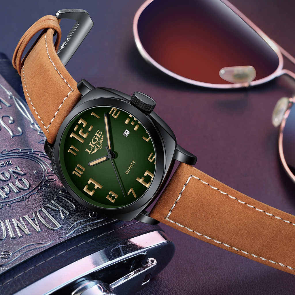 LIGE Moda Relógio Original Masculino Couro À Prova D'água Luminoso Esportes Quartzo Cronógrafo Relógios