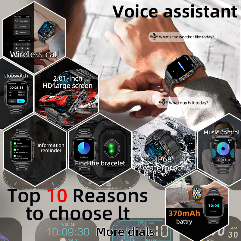 LIGE Multifuncional Relógio Inteligente LED Lanterna Esporte Relógios Monitor De Saúde Bluetooth Chamada IP68 À Prova Di
