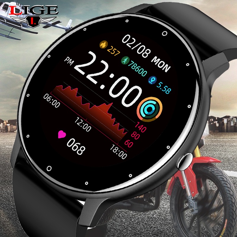 LIGE Novo Relógio Smart Watch Men Tela Full Touch Screen Esportivo IP67 Bluetooth À Prova D'água Para Android ios smartwatch + Caixa