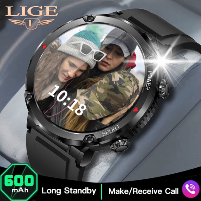 LIGE Relógio inteligente masculino 1,6 '' IPS HD tela Chamada relógios de pulso IP68 à prova d'água bateria de grande capacidade Smartwatch para Android e Ios