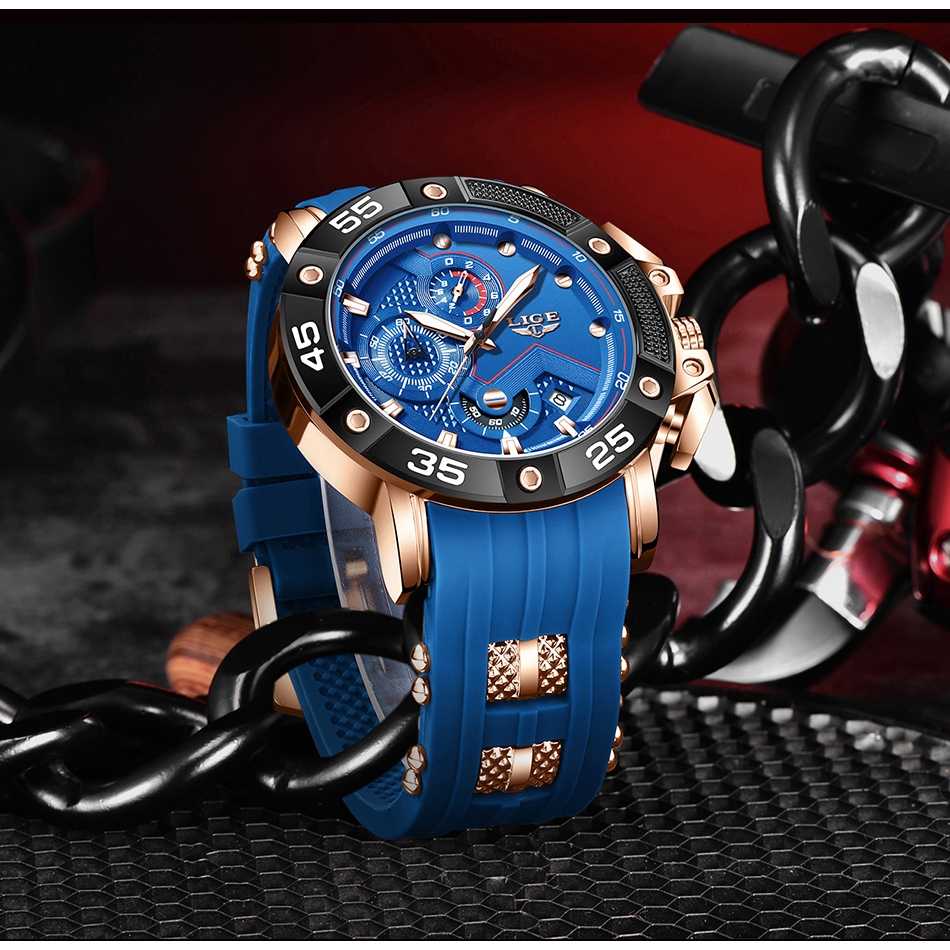 LIGE Relógio Original Masculino Moda Negócios Esportes À Prova D'água Luminoso Cronógrafo De Pulso De Quartzo Com Caixa