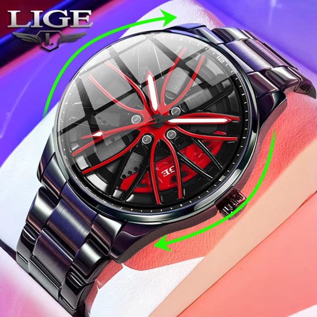 LIGE Relógio para homens Relógio de relógio com roda girável Relógio de quartzo impermeável à luz noturna Aço inoxidável