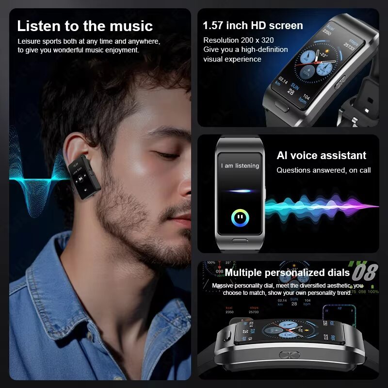 LIGE Smartwatch Relógio Inteligente 2 Em 1 Com Fones De Ouvido Para Homens E Mulheres , Chamada Bluetooth , Tela Sensíve
