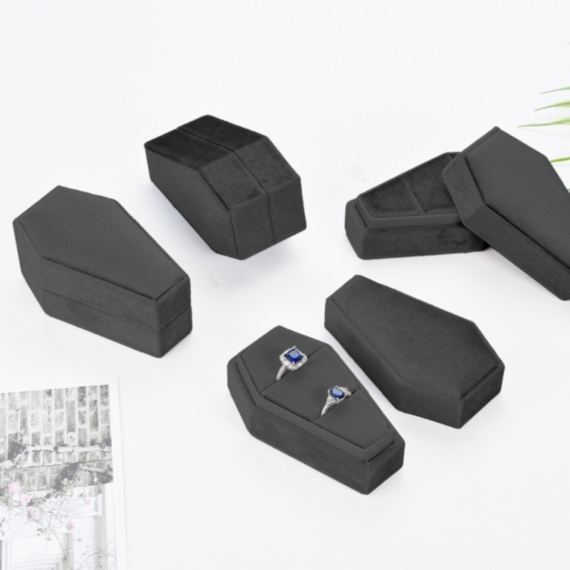 LIKE Caixa Anel Caixão Veludo Preto Jóias Porta-Pingente Colar Organizador Casamento Armazenamento