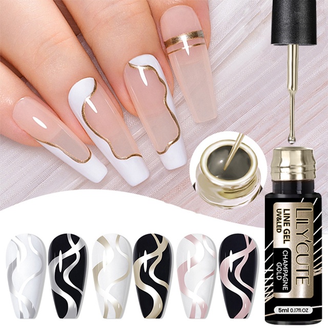 LILYCUTE 1Pc 5Ml Linha De Arte De Unhas De Prata Gel De Polimento Semi Permanente Uv/Led Pregos De Pintura Desenho Diy De Verniz Forro