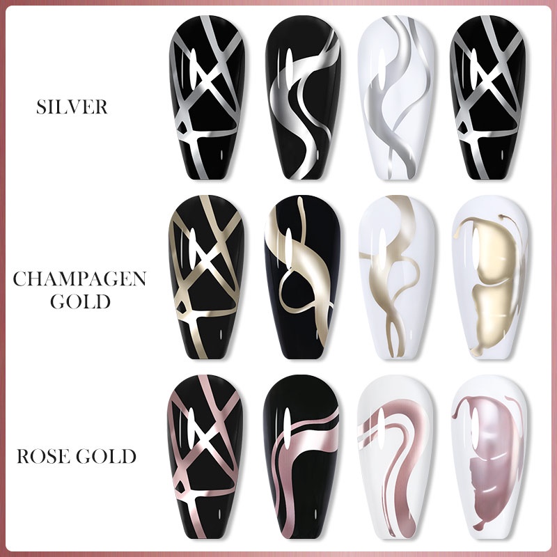 LILYCUTE 5ML Forro De Pintura Metálico Gel De Polimento Super Brilhante Ouro Prata Espelho De Unhas Semi Permanente Linhas Francesas