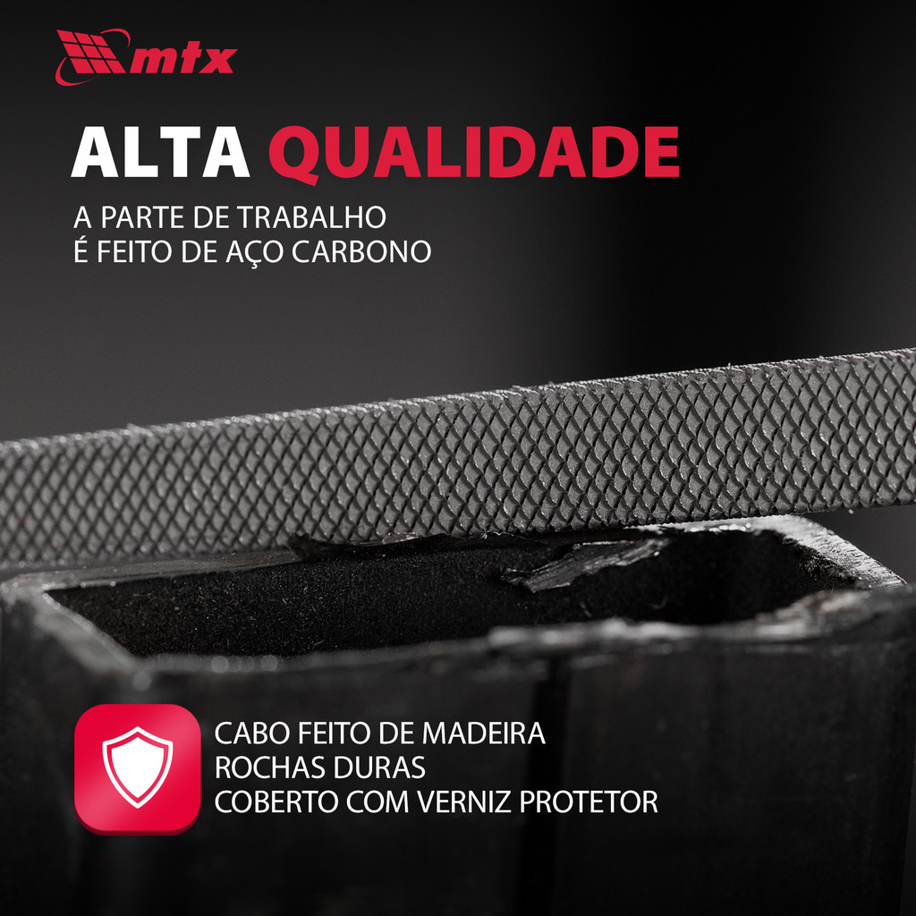 Lima Triangular MTX 1602955 – 250 mm Ferramenta de alta precisão para afiação, ajuste e acabamento em metais, adequada tanto para profissionais da mecânica quanto para entusiastas do faça você mesmo. Com parte de trabalho de 250 mm e cabo em madeira, alia durabilidade, eficiência e conforto. Principais Características: Durabilidade Reforçada • Fabricada em aço carbono resistente ao desgaste e ao uso contínuo • Mantém afiação e desempenho mesmo em condições rigorosas • Cabo de madeira de espécies duras com revestimento em laca para proteção contra lascas Produtividade Elevada • Entalhe cruzado nº 2 para remoção rápida e eficaz de material • Facilita lixamento intermediário após o uso de lima bastarda • Garante superfícies lisas e acabamento preciso em metais duros Conforto e Segurança no Manuseio • Cabo ergonômico que proporciona boa aderência e controle • Reduz a fadiga em trabalhos prolongados • Acabamento liso e resistente para melhor experiência de uso Aplicações: Afiação e acabamento de bordas, cantos internos e furos triangulares Trabalhos profissionais em oficinas mecânicas Projetos domésticos e bricolagem com metais Modelagem e polimento de ferramentas e componentes metálicos Benefícios: Ferramenta robusta, confiável e de longa duração Alta eficiência e rapidez no processamento de metais Conforto para uso prolongado sem desconforto Versatilidade para diversas tarefas de acabamento e afiação A Lima Triangular MTX 1602955 é ideal para quem busca um equipamento durável, preciso e ergonômico, capaz de entregar resultados profissionais em uma ampla gama de aplicações em metalurgia, mecânica e trabalhos domésticos.