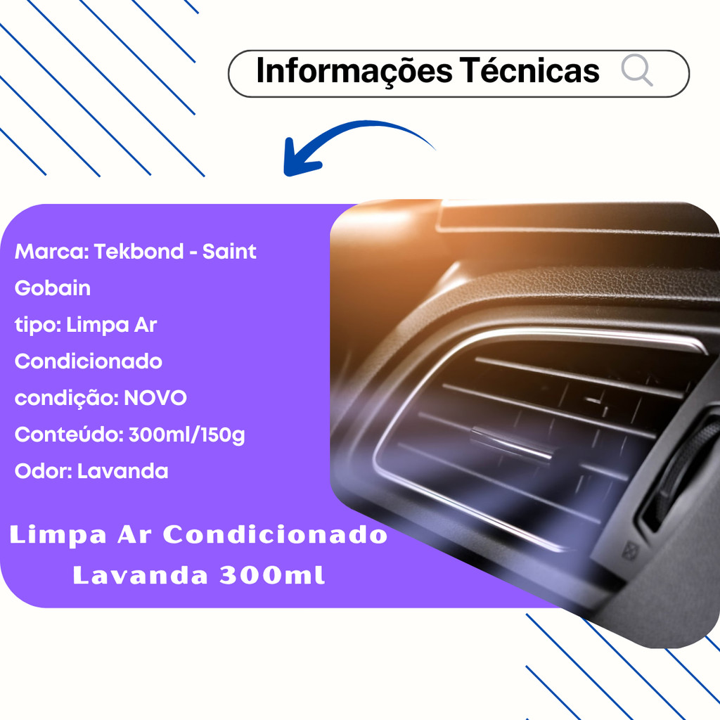 🌟 Bem-vindo!! Você está em uma loja especializada em soluções automotivas seguras e confiáveis. Aqui, cada detalhe é pensado para cuidar do que move você: sua família, sua segurança e seus melhores momentos na estrada. ❄️ LIMPA AR-CONDICIONADO LAVANDA, NEUTRO – TEKBOND – 300ML / 150G (ESCOLHA A FRAGRÂNCIA) O Limpa Ar-Condicionado Tekbond combate de forma eficaz germes, bactérias e fungos, além de eliminar odores desagradáveis — tudo isso sem necessidade de contratar serviço especializado. A falta de limpeza do ar-condicionado causa obstrução dos dutos, diminuição da eficiência do resfriamento e aumento no consumo de bateria e combustível. Além disso, cria um ambiente ideal para proliferação de ácaros e microrganismos, causando mau cheiro e desconforto. 🔢 Referências Compatíveis: • 34103/34091/24243 • 78072713044//17000019060 📦 Informações do Produto: Marca: Tekbond Tipo: Limpa Ar-Condicionado Condição: Novo Volume: 300ml Aparência: Compacto Aplicação: Manual Garantia: 90 dias ⚠️ Antes de realizar seu pedido, esclareça suas dúvidas. 🚗 APLICAÇÕES Produto desenvolvido para higienização completa do sistema de ar-condicionado automotivo, garantindo: Limpeza dos dutos de ventilação Eliminação de microrganismos nocivos Prevenção de contaminação Aroma agradável de lavanda após a aplicação ⭐ Principais Características: 🧪 Fórmula avançada: combate fungos, bactérias e ácaros nos dutos de ventilação. 🔒 Válvula especial: trava após o acionamento, liberando o produto automaticamente. 🌸 Fragrância Lavanda: deixa o interior do veículo cheiroso e renovado. 📘 Modo de Usar: 🔧 Antes de aplicar, substitua o filtro de pólen (caso o veículo possua). 🚗 Retire os tapetes de borracha e deixe os vidros dianteiros abertos em cerca de 5 cm. 🔄 Com o veículo ligado, coloque o ar-condicionado na função recirculação. ❄️ Ligue o ar no frio e na potência máxima. 🌀 Agite a embalagem e coloque-a no assoalho do passageiro. 🔘 Pressione a válvula até travar; aguarde o fim da aplicação (≈ 4 min). ⏱️ Aguarde 10 minutos antes de entrar no veículo. 🌬️ Desligue o carro e abra os vidros por 5 minutos antes de usar. 🛒 Onde Comprar: Adquira agora o Limpa Ar-Condicionado Lavanda Tekbond em nossas lojas oficiais: Camillo Parts, Genuine Automotive ou Edumac Parts. ✔️ Garantia de procedência e suporte especializado. ⚠️ Aviso Legal Proibimos o uso, cópia ou alteração de nossas fotos, imagens e conteúdo dos anúncios. Conforme a Lei 9.610/98, qualquer violação será tratada legalmente, pois possuímos direitos autorais sobre este material.