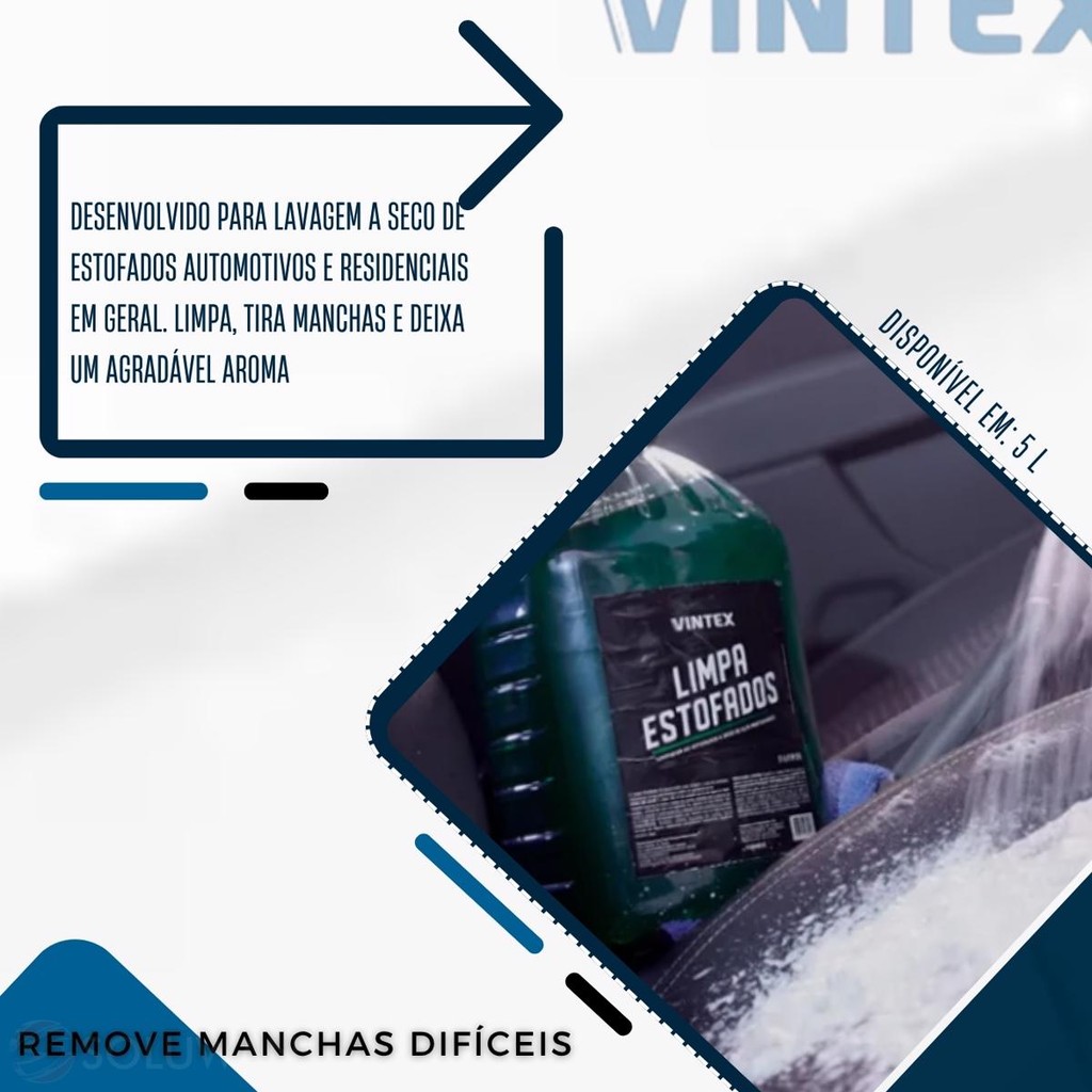 LIMPA ESTOFADOS 5L VONIXX / VINTEX ..................................................................................................................................... INFORMAÇÕES SOBRE O PRODUTO ..................................................................................................................................... O LIMPA ESTOFADOS é um produto que foi desenvolvido para lavagem a seco de estofados automotivos e residenciais em geral. Limpa, tira manchas e deixa um agradável aroma. .................................................................................................................................... MODO DE USAR: Diluir 300 ml do produto em 5L de água até fazer bastante espuma; Lavar o banco por partes, somente com a espuma do produto, esfregando com um Aplicador de Espuma ou escova bem macia; Em seguida aspirar a parte lavada até a retirada de toda a espuma e o excesso de umidade com um aspirador (água e pó); Esperar secar por algumas horas Remove manchas difíceis; Lava a seco; Deixa um agradável aroma. ..................................................................................................................................... DÚVIDAS FREQUENTES ..................................................................................................................................... Pergunta: Como é embalado o produto? Resposta: Todos os nossos produtos vendidos são embalados em caixas lacradas ou plástico stretch. Em respeito ao meio ambiente 90% das caixas são reutilizadas. Pergunta: Quem faz a entrega? Resposta: A entrega é terceirizada, feita via CORREIOS ou TRANSPORTADORA. Pergunta: O envio é feito em quantos dias? Resposta: Nós enviamos o seu pedido no prazo máximo de 24 horas após a confirmação de sua compra, sendo um dos envios mais rápidos da plataforma. Pergunta: Os produtos são novos ou usados? Resposta: Todos os produtos que trabalhamos são novos e com qualidade garantida. ...............................................................................