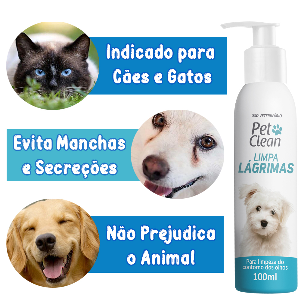 O Limpa Lágrimas Pet Clean auxilia na remoção de manchas ocasionadas pelas lágrimas ao redor dos olhos de cães e gatos, em qualquer fase da vida. O produto conta com ações adstringente, antibactericida, anti-inflamatória e anti-hemorrágica, que garante uma limpeza completa da região dos olhos do seu pet. O Limpa Lágrimas Pet Clean é indicado para remover secreções nos pelos ao redor dos olhos. - Indicado para cães e gatos; - Realiza a limpeza de secreções se agredir a região dos olhos; - Reduz as manchas de lágrimas; - Possui propriedade adstringente, anti-bactericida e anti-inflamatória, além de ter ação anti-hemorrágica. Contém: 100ML