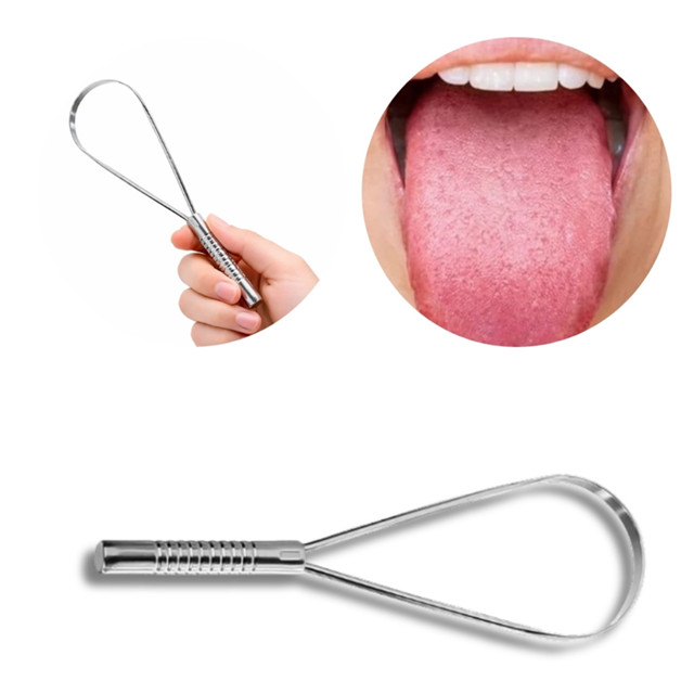 Limpa Línguas Raspador Oval Em Aço Inox Prata Antibacteriano