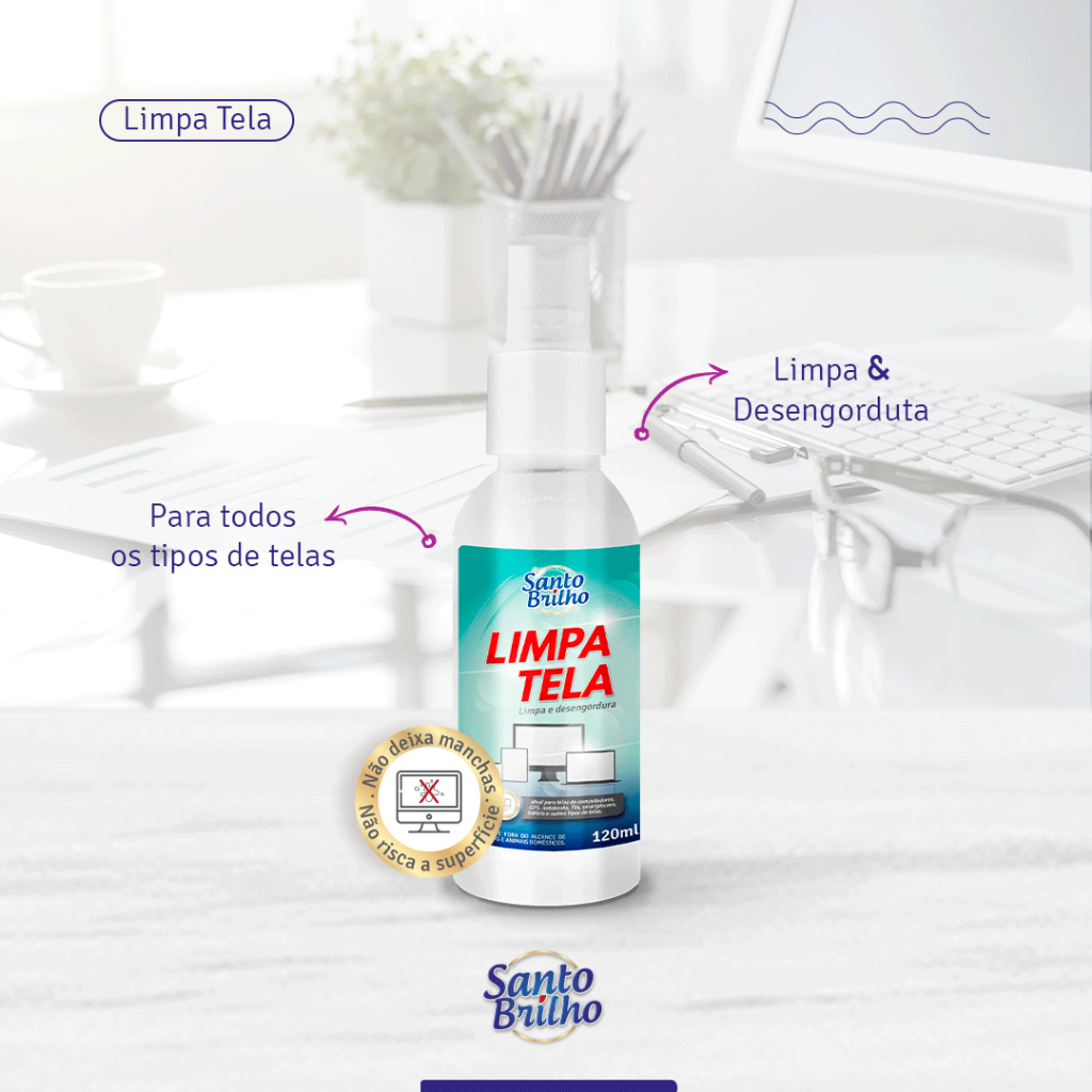 Limpa Tela 120ml Limpa sem arranhar Desengordura Vários tipos de tela O limpa telas é uma ótima poção para quem gosta de cuidar de seus eletroeletrônicos, celulares e parelhos de informática. Preserva seu aparelho com um produto especifico para telas, sem deixar manchas nem arranhões. Você poderá adquirir uma ou mais unidades, para isso basta selecionar a variação desejada.