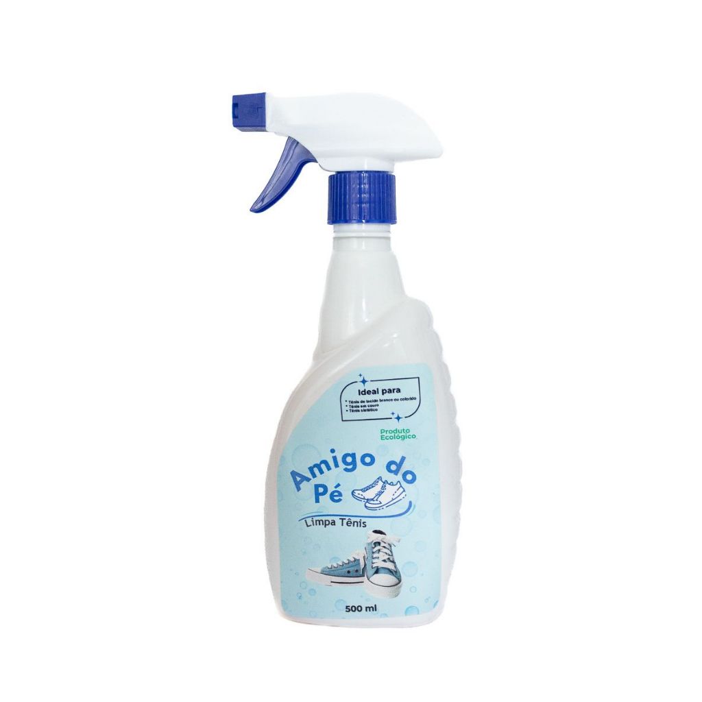 Limpa Tênis Ecológico 500ml - Amigo do Pé Mantenha seus tênis limpos e com aspecto de novos com o limpa Tênis Ecológico Amigo do Pé. Este produto foi desenvolvido especialmente para proporcionar uma limpeza eficaz de calçados, aliando eficiência e respeito ao meio ambiente. Remove sujeira, manchas e odores de forma rápida e eficiente, revitalizando a aparência dos seus tênis. Adequado para diversos tipos de materiais, incluindo tecido, couro, sintético e borracha, permitindo o uso em diferentes modelos de calçados. Modo de Uso: Aplicação: Borrife o Limpa Tênis Ecológico diretamente sobre a área a ser limpa. Esfregue: Utilize uma esponja ou pano macio para esfregar suavemente a superfície do calçado, concentrando-se nas áreas mais sujas. Secagem: Deixe os tênis secarem à sombra, evitando a exposição direta ao sol. Cuidados: Manter sempre a embalagem em lugares arejados e longe do alcance de crianças.