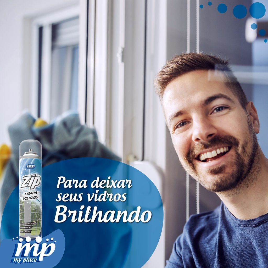 ZIP LIMPA VIDROS O Zip Limpa Vidros foi desenvolvido para limpeza de vidros e outras superfícies brilhantes, removendo os resíduos sem deixar manchas. Aplicações: É ideal para aplicação em espelhos, vitrines, para-brisas, acrílicos e box. Instruções de uso: Agite bem antes de usar. Segure a embalagem na posição vertical. Pulverize o produto direcionando o jato lentamente sobre a superfície desejada. Remover o produto com um pano ou flanela seca. Evite dirigir o jato sobre pessoas, plantas, animais, aquários, alimentos, utensílios de cozinha, paredes, chamas ou superfícies aquecidas. ** Conteúdo: 1 unidade spray de 400ml ** Fabricante: My Place