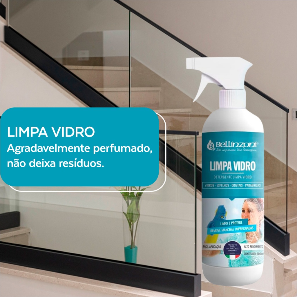 Limpa Vidro Superfícies de Aplicação: Vidros Cristais Aços Polidos Vitrines Para Brisas, etc. Finalidade: Bellinzoni Limpa Vidro é ideal para limpeza diária de superfícies de vidro, espelhos, cristais, aços polidos, teclados de computador, vitrines, para brisas, janelas, faróis de carro e toda superfície transparente e reflexiva. Limpa instantaneamente sem deixar riscos. Agradavelmente perfumado, não deixa resíduos. Instruções de Uso: Borrife o produto sobre a área a ser limpa, esfregue e remova-o com auxílio de um pano seco.